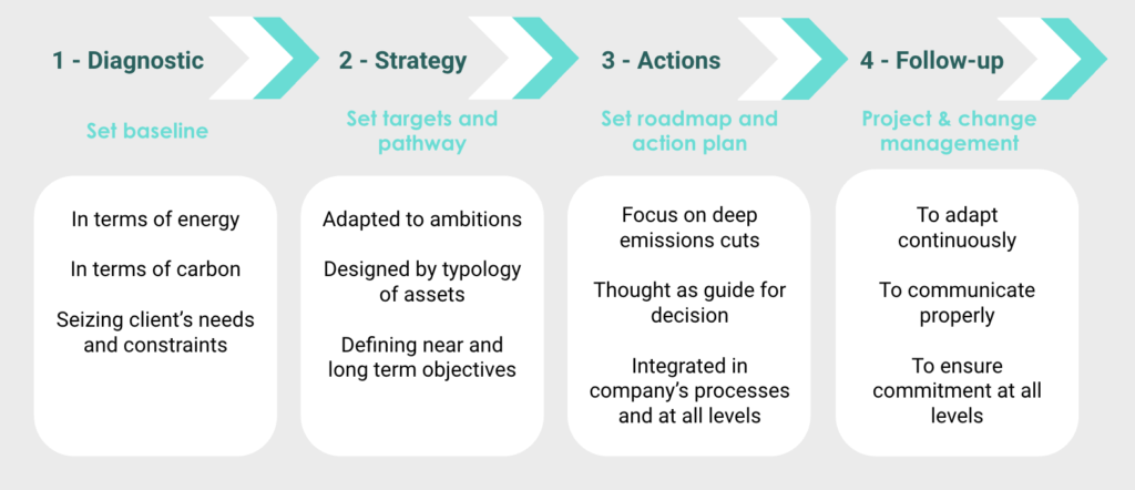 The sectoral decarbonization approach (SDA) is based on the 2°C scenarios of the IEA (ETP B2DS 2017) and requires companies of the same sector to have their emissions intensity by a unit of production converge by 2060. Target emission intensity varies based on company base year emission intensity, projected activity growth, and sectoral budget. When it comes to the GEVA approach, companies are required to reduce their greenhouse gas emissions per value added by 7% per year (compounded). This method is acceptable only if it leads to absolute emissions reduction. Lastly, the absolute contraction sets that organizations must reduce their absolute emissions at the same rate, irrespective of initial emissions performance by 2.5% minimum.