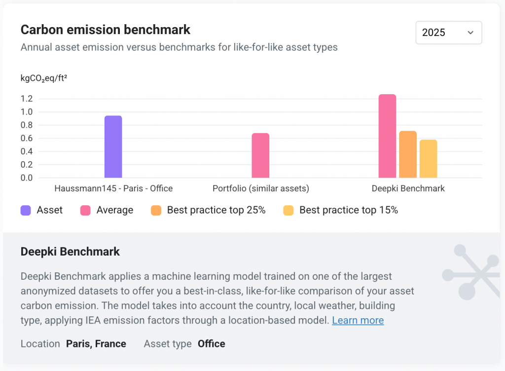 Explore these new features in action in our upcoming Product Release webinar on November 19 at 3 PM GMT / 10 AM EST. Get additional insights from the 2025 Deepki Index, providing a data-driven view of energy consumption and emissions benchmarks across European and U.S. commercial real estate.