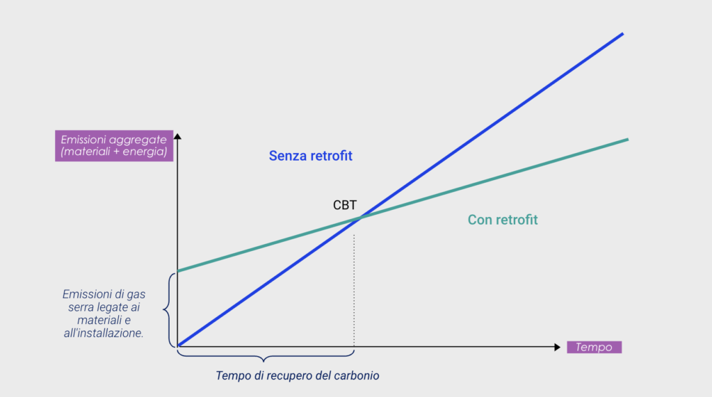 L’approccio del payback consente all’industria di calcolare quanti anni occorreranno perché il carbonio incorporato aggiunto da un edificio sia compensato dai carboni operativi. Per interventi di retrofit significativi, questo approccio può richiedere fino a 15 anni.